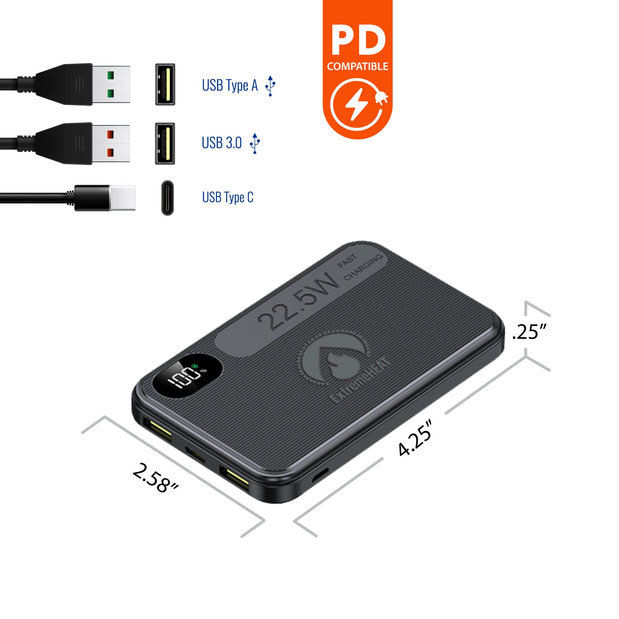 - Power Bank: Included 10,000 mAh 5V/2A battery for portable use